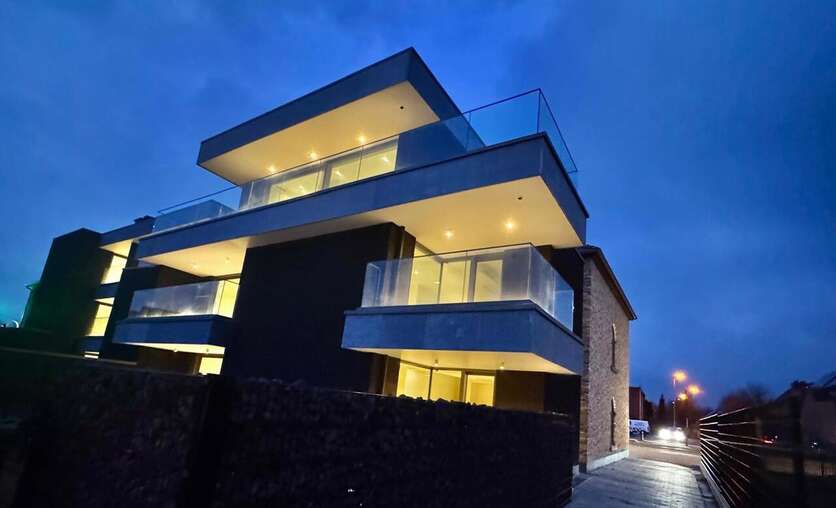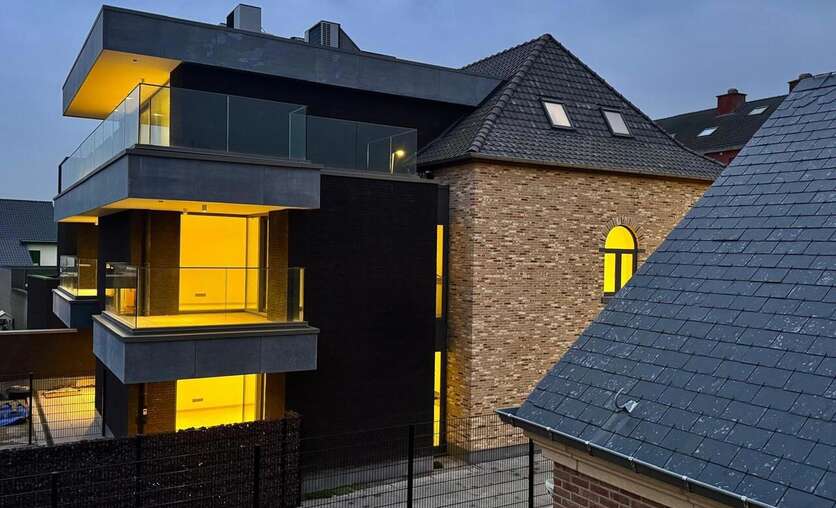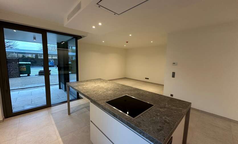 Hasselt/Kortessem, Hasseltsesteenweg 9 bus 1.1: energiezuinig nieuwbouwappartement, 2 slaapkamers, luxueus ingerichte keuken met vaatwasser, combi-oven, inductie kookplaat, badkamer met inloopdouche, vloerverwarming, overal verlichting, volledig geverfd, autostandplaats in de kelder en mogelijk 2de standplaats in carport , zeer grote kelder.