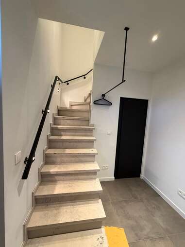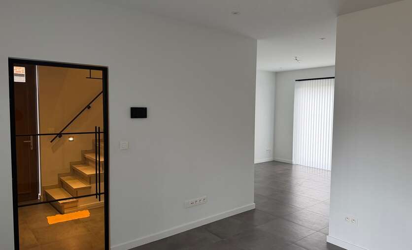 Hasselt/Kortessem-Tongersesteenweg 24 B: Zeer mooie woning, als nieuw, afgewerkt met hoogwaardige materialen en domotica systeem, gelegen op wandelafstand van het centrum van Kortessem. Indeling: gelijkvloers met inkomhal en gastentoilet, ruime living + eetplaats, keuken met inductie kookplaat, vaatwasser, combi-oven, ingebouwd espresso koffieapparaat, grote koelkast, berging aan de keuken; op verdiep nachthal, badkamer met inloopdouche en dubbele wastafel, toilet, 3 slaapkamers, grote zolder. Overal vloerverwarming. Buiten een grote diepe tuin met ruime tuinberging (mancave). Voor bezoek telefoneer 0474/950872.