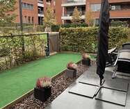 Hasselt/Kortessem, Oud Mersenhoven 6A: Gelijkvloers appartement, in het centrum van Kortessem. Zeer energiezuinig (EPC=93) en voorzien van alle modern komfort. Inkomhal met apart toilet, living + eetplaats, open keuken (volledig ingericht), berging, 2 slaapkamers, badkamer met douche, kelderberging, tuin met terras op het westen aan de achterzijde en terras op het oosten aan de voorzijde, autostandplaats voor de deur. Geen huisdieren.