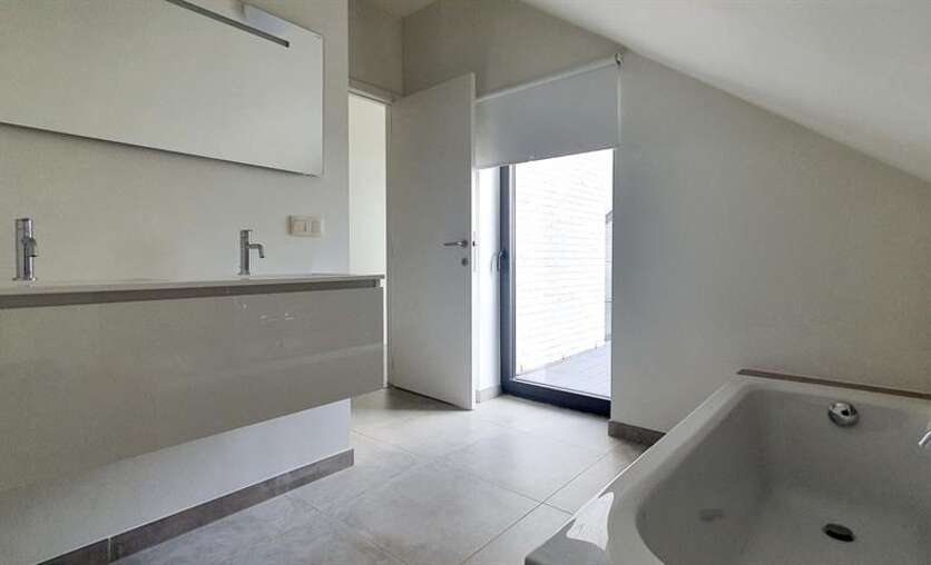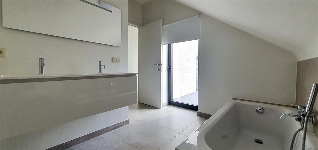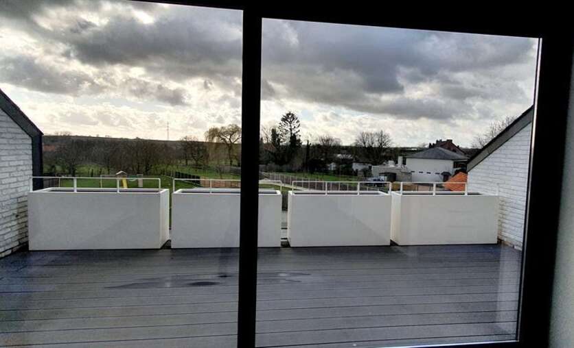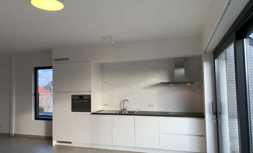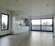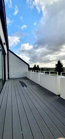 Als nieuw: appartement van 111 m2 bereikbaar met lift, hal met apart toilet en berging, ruime living + eetplaats (voorzien van airco), volledig ingerichte keuken met vaatwasser-combioven-frigo-keramische kookplaat, badkamer met inloopdouche, 2 slaapkamers, zuidgericht ruim terras, autostandplaats + buitenberging. CV op aardgas met vloerverwarming. Zonnepanelen voor gratis electriciteit. Algemene onkosten 80 euro/maand (gebruik zonnepanelen inbegrepen). Super energiezuinig: E-peil=34 (zie bijlage). Plan in bijlage.