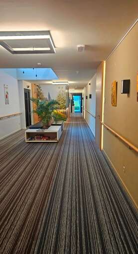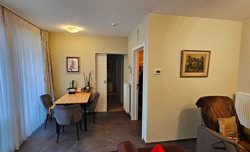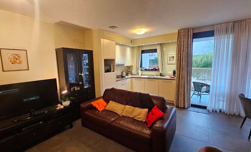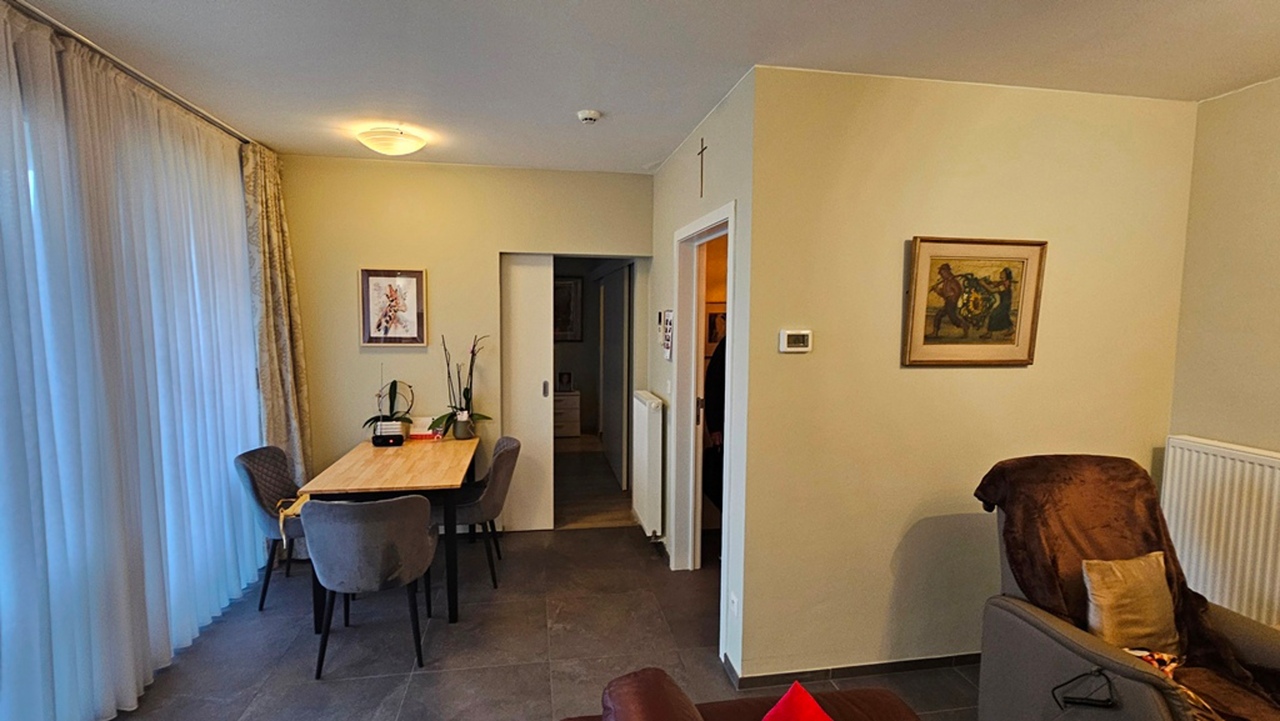 Alken, Alkerstraat 32 bus 2: zeer mooie energiezuinige woning (seviceflat/assistentiewoning) met terras op een rustige locatie voorzien van alle modern komfort. Indeling: inkom met berging, mooie living met open keuken, 1 ruime slaapkamer en badkamer met inloopdouche; ondergronds een autostandplaats en een berging. Gemeenschappelijke ruimtes en tuin voor gezellige bijeenkomsten met andere bewoners.